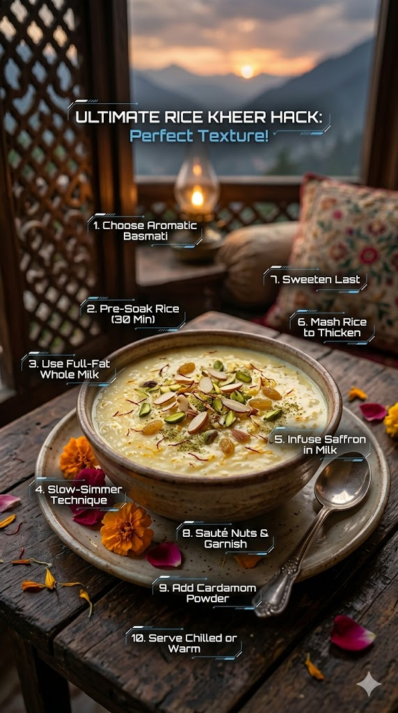 Use high-quality Basmati or Gobindobhog rice for a distinct fragrance that defines authentic Indian kheer.